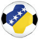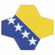 La bandera de Bosnia y Herzegovina contiene una amplia banda vertical azul medio en la parte de la mosca con un triángulo amarillo derecho en el borde de la banda y en la parte superior de la bandera. El resto de la bandera es azul medio, con siete estrellas blancas de cinco puntas y dos estrellas de media altura y fondo a lo largo de la hipotenusa del triángulo.