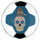 Esta impresionante pelota de fútbol tiene un cráneo gris espeluznante con ojos azules brillantes y dientes amarillos podridos. Encima del cráneo hay una rata marrón con orejas rosas, cola, garras y nariz y ojos azules, La rata tiene una espalda arqueada lista para saltar hacia ti. Un gran diseño para los amantes de las ratas y para Halloween.