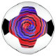 Bola de fútbol contra espiral roja y azul. Derechos reservados (C) Kenneth Kenji Yoncich. Todos Los Derechos Reservados.