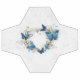 Corazón dorado, con flores morfo realistas azules y blancas. Morfo. Diseño con morfo de mariposas azules.