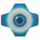 Representación visual de un símbolo de ojo circular azul vibrante con patrones intrincados, enfatizando el significado artístico y cultural en elementos de diseño.