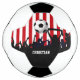 Un diseño único y personalizado de deportes de fútbol con una silueta de hinchas de fútbol de negro con una pelota de fútbol sobre fondo de rayas rojas y blancas. Personalizar el texto para añadir el nombre del futbolista o hincha de fútbol o el texto de tu elección. Si desea que este diseño en una combinación de colores diferente coincida con los colores de su equipo, por favor contáctenos a través de nuestra tienda GiftsBonanza.