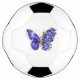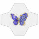 Joyería, azul, zafiro, mariposa floral brillante con ala decorada con flores azules y preciosas con hojas de oro sobre fondo blanco.