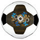 Composición de reloj de vapor redondo con dial numérico romano negro, decorado con arcos de oro y latón, mariposas morfo azules y lentes dañadas sobre fondo rayado marrón. Estilo Steampunk.