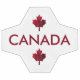Canadá con una fuente en mayúscula de color rojo profundo, coronada por una hoja de arce roja de dos tonos remachados, colocada encima y debajo de la palabra Canadá. Colocado en blanco sólido.