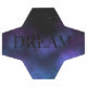 Balón de fútbol con la palabra 'dream' en sólidas letras negras de mayúsculas contra un cielo estrellado en la noche entre nubes azules y violetas del espacio nebuloso. Sutil, oscura y profunda como el misterioso reino de los sueños. Utilice la plantilla de texto para agregar un nombre o una cita corta inspiradora. ♡ Idyllfire