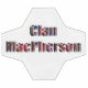 Las palabras del clan MacPherson en un diseño de tejido tartán dimensional