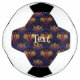 El producto presenta una estampación repetitiva inspirada en un diseño clásico de estilo barroco. El motivo central se asemeja a un estilizado fleur-de-lis o a un elegante plume, representado en tonos dorados, rojos y naranjas vibrantes con efectos de gradiente. El fondo es un azul marino profundo, creando un contraste rico que hace que los elementos de diseño aparezcan. El patrón tiene un toque lujoso y regal, con curvas simétricas y fluidas que le dan un aspecto sofisticado y atemporal.