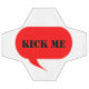 Fun soccer ball, con gráficos de una gran burbuja de conversación de emote rojo, con texto negro en negrita que diga Kick Me. Personalice el texto negro para leer diferente o irse como está.