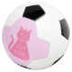 Esta impresionante pelota de fútbol muestra una imagen de arte digital de un gato rosa bonito con una cola rizada. Sus ojos son rosa pálido con pupilas negras y tiene pestañas negras largas. Ella lleva un arco rosado en su cabello y un hermoso collar de perlas alrededor de su cuello. El diseño es perfecto para celebrar a una niña. Hay texto personalizado en el gato para que puedas incluir un mensaje. El mensaje predeterminado dice Papá para ser.