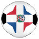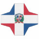La bandera de la República Dominicana cuenta con una cruz blanca centrada que se extiende hasta los bordes y divide la bandera en cuatro rectángulos: los de arriba son azules (lado de la ala) y rojos, y los de abajo son rojos (lado de la ala) y azules.