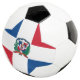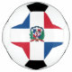 En el centro de la cruz se encuentra una gran cortina de armas con el diseño de la bandera y apoyada por una rama de laurel (izquierda) y un flanco de palmera (derecha). encima del escudo, una cinta azul muestra el lema nacional: Dios, Patria, Libertad. Debajo del escudo, aparecen las palabras República Dominicana en una cinta roja. En el centro del escudo, flanqueado por tres lanzas (dos de ellas portando pancartas dominicanas) a cada lado, hay una Biblia con una pequeña cruz encima y abierta al Evangelio de Juan, al capítulo uno o al capítulo 8, versículo 32, que dice Y la verdad nos hará libre (Y la verdad te hará libre).