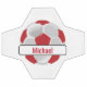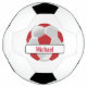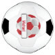 Balón de fútbol rojo y blanco oscuro con nombre de