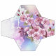 Dibujado artísticamente, rama de rosa, flores de cerezo sobre fondo pintoresco, texturizado, pintado con pintura blanca, rosa y azul. Pink Sakura