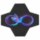 Símbolo de infinito violeta y brillante con colibrí azul sobre fondo negro. Neón.