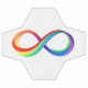 Símbolo claro de infinito de capas plásticas de colores saturados rojo, amarillo, verde, turquesa, azul y violeta sobre fondo blanco.