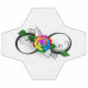 símbolo infinito con rosa arcoiris sobre fondo blanco.