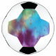 Una pelota de fútbol, con una imagen de un diseño de tinte =(Tye Dye#7)=(Art By P.J.M),Color= Púrpura oscuro,Rosa,Azul claro ,Turquesa, Amarillo,Verde,Blanco
