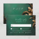 RSVP con estilo con esta tarjeta de respuesta de la bola de mascarada. El lujoso diseño cuenta con un fondo verde de textura intrincada adornado con un falso efecto 3D dorado, creando un impresionante tema de Mardi Gras y boda de disfraces.