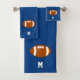 Balón y Monograma de Fútbol Americano sobre el juego de toallas de baño azul real. Elegante y sencillo diseño para los amantes del deporte.