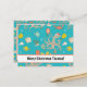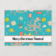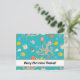 Cuesta, postal de Navidades acuarelas con Oliver el Octopus jugando pickleball bajo el agua sobre fondo verde de la minoría.