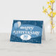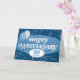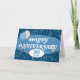 Esta es una tarjeta del 30 aniversario de Empleados en azul que presenta el texto central 'Feliz Aniversario' escrito en blanco con una fuente atractiva y puesto contra un cuadro de texto azul claro, ovalado. Debajo de este texto está el número de años. A la izquierda del texto hay un par de globos, uno gris pálido y otro azul, con el efecto de que están anclados por sus cuerdas envueltas alrededor del deseo del primer A del aniversario. El fondo es de un azul oscuro con un patrón circular y estelar de color claro.