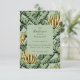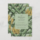Estas modernas y divertidas tarjetas verdes y amarillas "El Bunch Has Moved", con Invitaciones móviles, cuentan con bananas amarillas hechas a mano y hojas verdes de plátano contra un fondo verde con sutiles detalles de gotas de lluvia. La parte posterior presenta el mismo patrón.