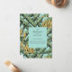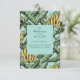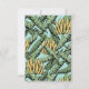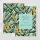 Estas modernas y extravagantes tarjetas de Invitación "The Bunch Has Moved" incluyen banana amarilla dibujada a mano y hojas de plátano verde sobre un fondo turquesa con sutiles detalles de gotas de lluvia. La parte posterior presenta el mismo patrón.