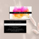 Las tarjetas de moda acuarela para su salón, spa o servicios de belleza incluyen su nombre o nombre de compañía en una delgada banda de negro, sobre un floreciente ilustracion de manchas de tinta en brillantes y coloridos tonos de puesta de sol de rosa fucsia y varilla de oro. Agregue la directiva de cancelación, el encabezado del personalizado y la información de contacto a la parte posterior en blanco sobre negro crudo. Incluye espacio para escribir en la siguiente fecha y hora de cita del cliente.