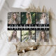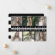 La moderna tarjeta de invitación de graduación en negro de moda muestra seis de tus fotos favoritas alineadas en dos filas, con el "graduado" mostrado en el centro con elegantes letras gris-azul. Personaliza con tu nombre, colegio y año de graduación en un simple overlay blanco. Las tarjetas se revierten a un patrón ancho a rayas en negrita en blanco y negro. Una elección elegante y moderna para los graduados de 2017.