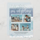 La tarjeta de vacaciones de estilo costero de moda añade un toque náutico a tus saludos navideños. Perfecto para compartir fotos de vacaciones, o para familias que viven en lugares costeros, tropicales, cálidos o isleños, este elegante diseño cuenta con cuatro fotos en un diseño de collage, sobre un fondo de rayas de color azul y verde marino, con falso purpurina azul en la parte superior e inferior. "Mares y saludos" aparece en la parte superior con letras blancas escritas a mano, con el saludo de su personalizado y/o los nombres en la parte inferior.