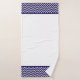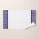 Moderno juego de toallas de baño con rayas color azul marino y blanco chevron.