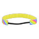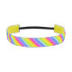 Una tira de pelo con estribos de color adornados con motivos de una tira de arcoiris reproducida adorable. Idea para fiestas arcoiris o ocasiones coloridas. Diseñado por Sarah Trett.