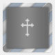 Banda azul, plateada y blanca con invitación cruzada blanca y pegatina de sello para sobres de invitación. Puede mover y cambiar el tamaño de la cruz y agregar texto.
