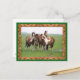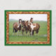 Un grupo de cinco caballos Appaloosa marrón y blanco parados juntos en un campo verde.Con un bebé frito.Esta postal tiene un marco marrón parqué de madera y el fondo verde del bosque. El color de fondo puede cambiarse a cualquier color que desee que sea con la etiqueta personalizado.Esta postal puede agregar texto al mismo tiempo.