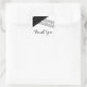 Moderno y de moda Boda de bandas geométricas Gracias Pegatinas con un triángulo negro y un acento de rayas delgadas. Estos pegatinas sencillos y elegantes se configuran para ser fácilmente personalizados con la información de su boda. Para obtener más opciones de personalización, haga clic en Personalizar.