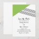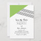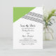 Banda geométrica moderna y a la moda Salven el anuncio de fecha con un triángulo verde y un acento de rayas finas. Esta invitación simple y elegante se configura para que se adapte fácilmente a la información de su boda. Para obtener más opciones de personalización, haga clic en Personalizar.