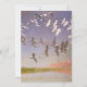 Ilustración vintage de diseño de vida marina y animales salvajes que presenta una bandada de ibis volando en formación circular sobre un pantano con las alas extendidas.