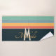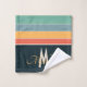 Diseño minimalista de franjas horizontales coloridas y líneas inspiradas en el divertido estilo de los años 70, con una paleta de colores retro vintage de naranja amarillo azul y agua gris para todas las personas nostálgicas. este diseño puede ser personalizado y personalizado fácilmente con el nombre y la tipografía elegante estilo monocrograma.