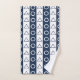 Juego de toallas de baño con triángulo geométrico de tiras blancas azules.