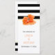 Elegante ceremonia de boda y programa de fiestas. Presenta una hermosa flor de amapola de coral y rayas negras y blancas.