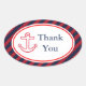 Un ancla y rayas náuticas rojas y azules decoran estas divertidas gracias pegatinas. Usa estos pegatinas para una fiesta de cumpleaños, una ducha para bebés, etc... El diseño es de arte original.