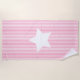 NewparkLane - Moderno diseño de toalla de playa, con estriado de cabaña rosa y blanco caliente, y una gran estrella blanca. Fácil de personalizar en Zazzle con su propio texto para un diseño personalizado. Consulte esta colección Stars para ver los elementos coincidentes, como los flipflops. Todos los objetos se mezclan con otros colores, gris, verde azulado y azul marino. ¡Diviértete y combina y hace juego! ¿Tienes deseos de diseño personal específicos? ¡Siéntete libre de contactarme!