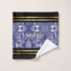Bandas de baño de mármol geométrico monogramado, negro y azul marino contemporáneo, y rayas doradas. Reemplace los detalles por los que desee.