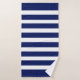 Elegantes rayas azules y blancas en la toalla azul marino.