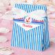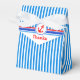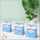 Bandas azul náuticas con caja de regalo de ancla roja. Lecturas Gracias. Ideal para cumpleaños con temática náutica, duchas para bebés y otras celebraciones con temática marina o costera. Diseñado por Sarah Trett.