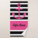 Toalla de baño con el nombre del guión del ancla rosada de las franjas negras. ¡Simplemente edita texto para personalizar!