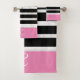 Monograma Baño inicial con toallas de baño estilo mármol negro y rosa