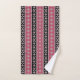Set de toallas de baño negro y rosa con rayas y diamantes.