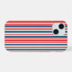 Esta obra de arte presenta un patrón audaz y directo de rayas verticales en un esquema clásico de color rojo, blanco y azul. Las rayas son uniformemente espaciadas y de grosor alternativo, creando un diseño rítmico y visualmente llamativo. El arreglo lineal y limpio de los colores da a la pieza un sentido de orden y simplicidad, mientras que el uso de matices patrióticos evoca un sentido de orgullo nacional y tradición. La repetición y el equilibrio en el patrón contribuyen a su estética fuerte y geométrica.